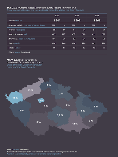 Ministry for Regional Development CR will introduce you with the activities, which was dedicated in the field of tourism for the year 2012. It is mainly about statistical data and trends in the tourism sector, activities related to drafting of concepts, legal regulation and international co-operation in the field of tourism. These activities are either of an administrative nature which derives from the powers of the Ministry for Regional Development of the Czech Republic being the central state administration authority, or they focus on specific measures supporting tourism development in the Czech Republic.