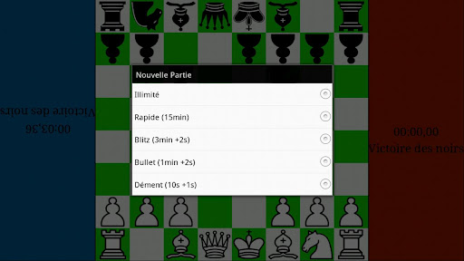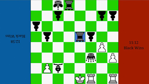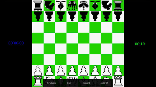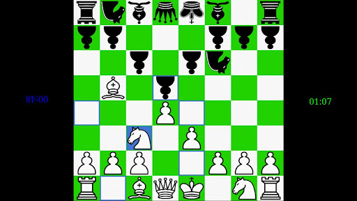 A simple two player chessboard with inverted pieces to suit each players viewpoint. Includes highlighted move options and timers for unlimited, quick, blitz, bullet and insane games.