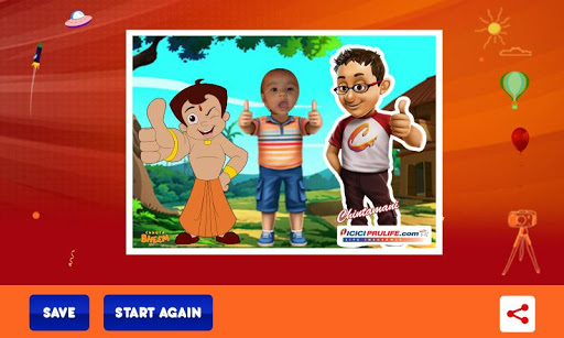A fun application that allows you to click a picture with your favourite friends, Chhota Bheem and Chintamani. Make your picture even more fun by choosing from various costume and background options. Go on put on your best smile and go click!
