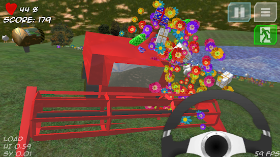 - the harvester can be controlled using the accelerometer or the on-screen steering wheel. Press the pedal for reverse.
