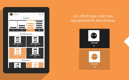 L’application Chiffreo vous permet de gérer vos projets de rénovation d’installations électriques sur votre téléphone ou votre tablette Android. Elle est destinée à simplifier le quotidien des professionnels de l’électricité en leur permettant de renseigner les données pertinentes pour traiter un chantier, un projet de rénovation électrique, etc... L’application Chiffreo n’est pas une application de gestion ou de création de devis.