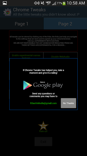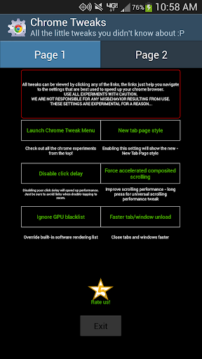 与往常一样,我们是不负责的任何东西你陷入困境。实验设置要加快你的浏览能力,而且还可以产生不良的影响!下载和使用我们的应用程序,您同意自行负责自己的行为和选择/实验启用/禁用。