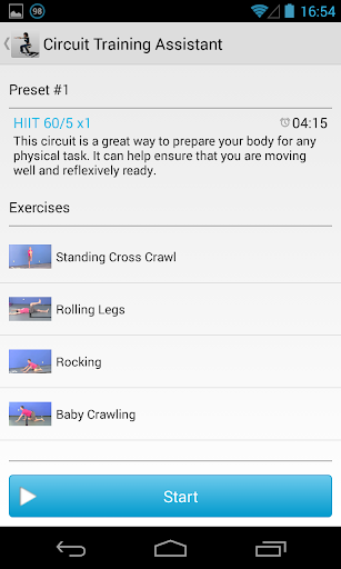 Get in shape or improve your fitness level in the privacy of your home with Circuit Training Assistant. The app includes a library of follow along workouts based on High Intensity Circuit Training (HICT) such as the famous 7 minutes workout.