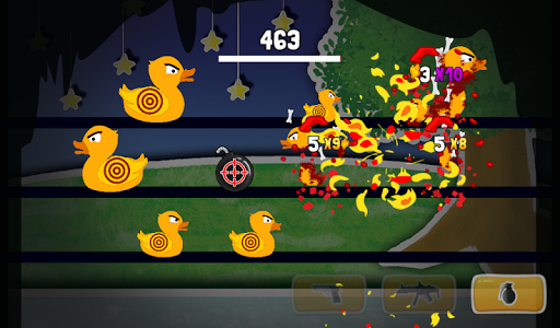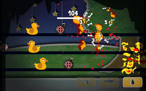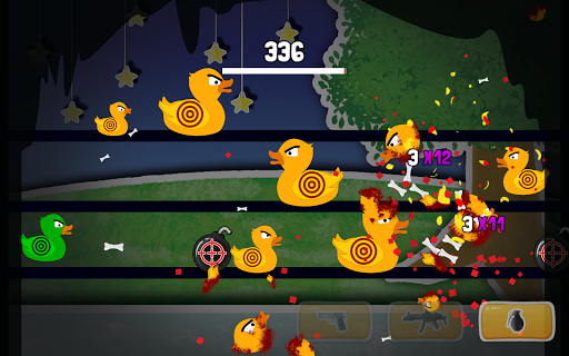 Use the powerful pistol to shoot, smattering sub machine gun to kill and the grenade to bomb them and deal great area damage to blast and kill those ducks off the lanes to gain points.
