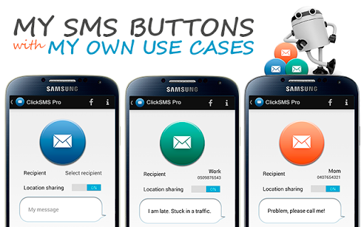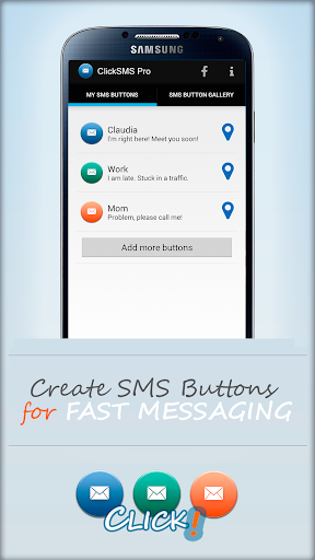 ★ Create clickable SMS buttons for frequently used messages, with location information inside the message.
