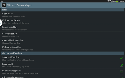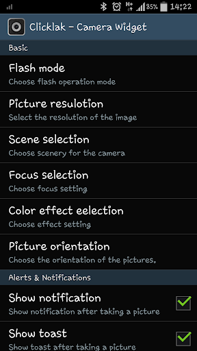Clicklak is a widget application that allows you to take pictures directly from your home screen!