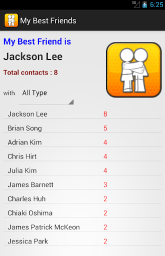 "Best Friend" : You can find your Top 10 people with high level of closeness.