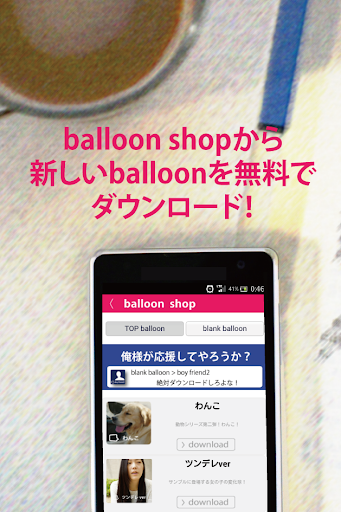 ・最初から入ってるballoonの他に、balloon shopから無料で新規のballoonをダウンロード!
