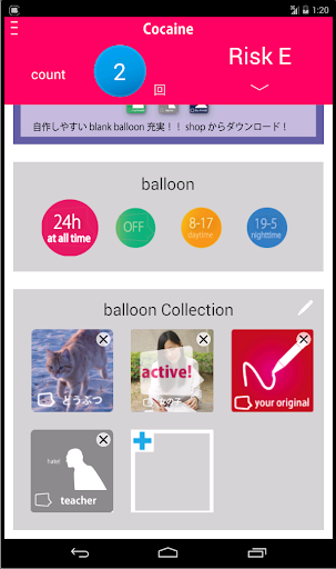 ・balloon shopからダウンロードしたballoonは、時間帯やスマホ依存の状態によってコメントが変化!