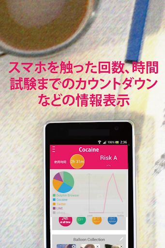 ・次のテストまでの日数、もしくは前にスマホを触ってから何分間”脱スマホ”していたかを表示してモチベーションを高めます。