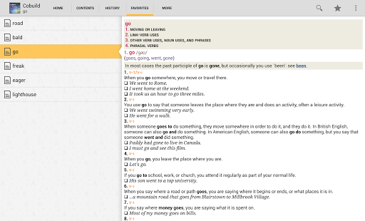 The Collins COBUILD Intermediate Dictionary is based on a huge database of text, both written and spoken, called The Bank of English. The Bank of English® contains over 650 million words, and it is the basis of all the statements that COBUILD makes about the language. The entries contain a detailed account of the main uses and meanings of each word. Each of the forms is listed at the start of each entry, along with information about alternative spellings, if any exist. Explanations are written in full sentences, and show typical grammatical behaviour. The explanations also give a clear description of meaning. And of course, the thousands of examples are taken directly from The Bank of English®, showing typical patterns of use and grammatical structure.