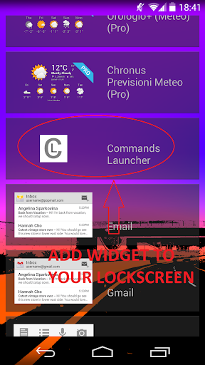 Commands Launcher is a small application that lets you define commands (more precisely shortcuts) that can be used in a widget (homescreen or/and lockscreen).