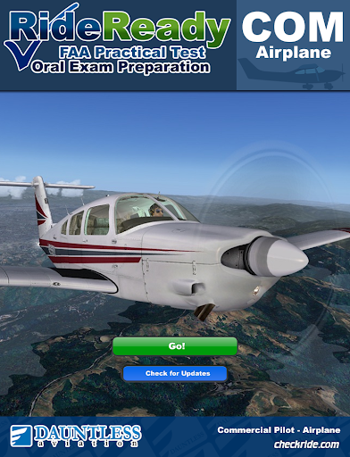 RideReady will help make you confident and ready for your FAA Commercial Pilot Airplane Practical Test / Checkride (that combination of flight test and oral quizzing that you will need to pass in order to receive a commercial pilot certificate) and allow you to impress the examiner with your knowledge of relevant knowledge areas as per the Practical Test Standards and current FAA practices and recommendations.