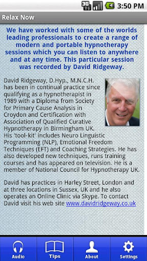 Each track in this app is a combination of words spoken by certified hypnotherapist David Ridgeway D.Hypn., M.N.C.H. and soothing, uplifting "binaural" music.