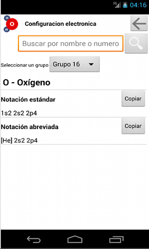Con esta aplicacion usted podra obtener la configuracion electronica de los elementos de la tabla periodica ademas podra copiar el resultado en cualquier otra aplicacion como procesador de textos, mails, redes sociales, etc.