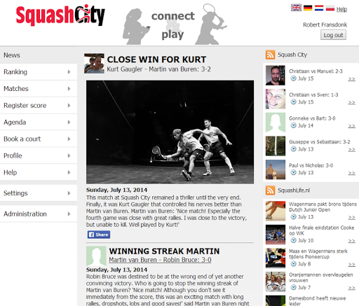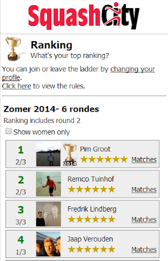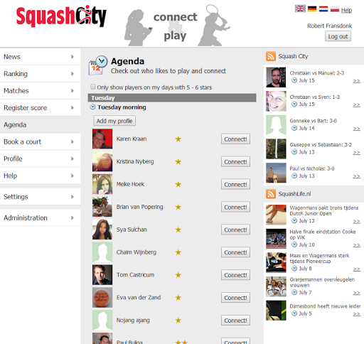 The most complete online squash ladder, tennis ladder or golf ladder. Every 2 weeks we arrange an exciting match for you at your play level.