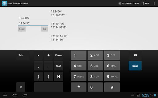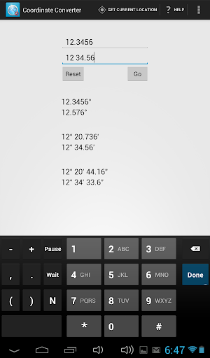 Upon pressing "Go", the App will convert the coordinates entered into: