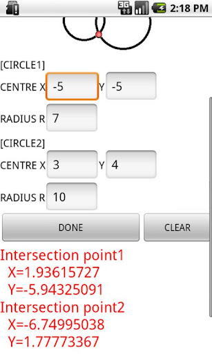 The intersection which a circle and a circle cross is calculated. Two coordinates are calculated when there are two intersections.