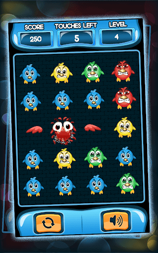 When a green bird is hit or touch it turns red; on being hit or touched a yellow bird turns green and a blue bird turns yellow. The main aim of the game is to clear the screen of all the birds. Hit the less angry birds and make them angrier, turn them red and make them burst. Eradicate all the birds in the allowed number of moves and win the game.