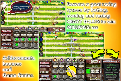 Normal betting rules apply - the likely winners win less cash. This is no normal racing game though. Power-ups, obstacles, cash bonuses and achievements add an unpredictable edge. Not only that but you get to own your own goat. If you have enough cash, you get to own your own goat for one race only. You can then race it by "spanking" or "fingering" your goat as fast as you can to get to the other side. Don't forget to place bets on your own goat and make sure its more than what you paid for your goat or it wont be worth it.
