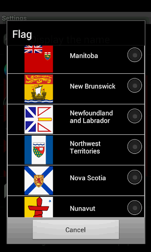 This LiveWallPaper displays a 3D cube, with flags of provinces and territories of Canada (Alberta, British Columbia, Manitoba, New Brunswick, Newfoundland and Labrador, Northwest Territories, Nova Scotia, Nunavut, Ontario, Prince Edward Island, Quebec, Saskatchewan, Yukon).