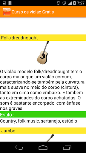 O aplicativo do curso de violão está dividido em módulos, do iniciante ao profissional, com diversas dicas e informações importantes, dicas para escolher o violão certo para você.