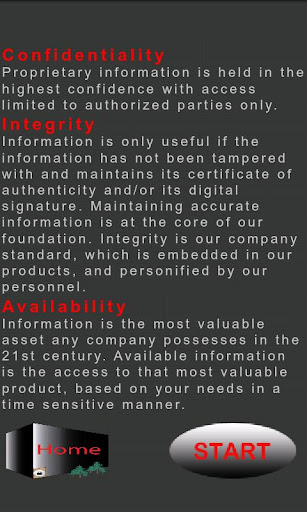 Cyber Security/ Information Assurance are the greatest concerns in the Information Age of the 21st Century!!! This Application will help educate and protect your company's most valuable resources...your information. This application provides videos of security threats and how to protect yourself. These videos include demonstrations of dumpster diving, a common practice among identity thieves. Why it is important to log off your computer and the potential consequences if you don't. Password security tips on how to protect your user account. Secure Doors and the consequences of lax security. Shoulder surfing and how to be aware of this practice. Tailgating, a cunning tactic used by criminals. Unsecured cables that can be used to steal data from a company. The App also provides key terms and definitions that are part of the computer security and information assurance world. Information Assurance terms like Risk, Risk Management, Threat, Vulnerability and Impact are covered and are all key to protecting your data. There is a detailed list on how to manage Risk and a chart to help implement and track the process. You can view the steps on how to assess Vulnerability Analysis and a chart for visual conformation. There is even a list of malicious attacks like Spoofing, DoS(Denial of Service), and Social Engineering, to name a few. The bottom line is if you are in IT(Information Technology), IA(Information Assurance), a Business Owner, a Manager, or just interested in the future of technology and the growing risks associated with it, this application will help educate you, make you aware and help protect your company.