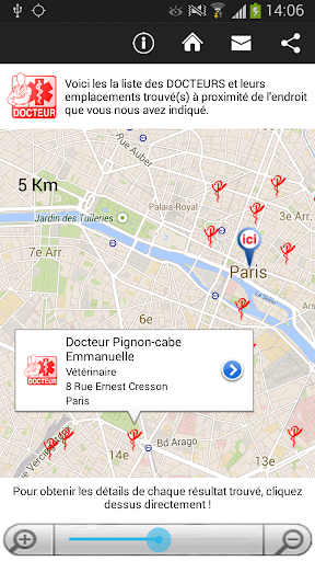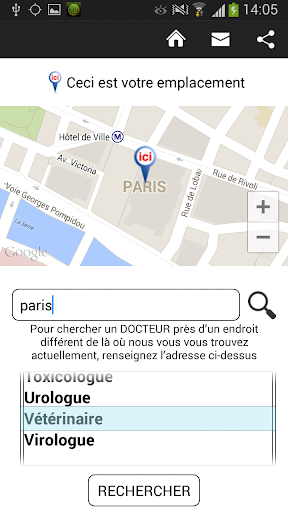 L’application DOCTEUR est l’outil indispensable pour trouver le docteur dont vous avez besoin à l’endroit où vous vous situez. Placez vous sur la carte ou entrez l’adresse de votre choix et trouvez selon la spécialité voulue, le docteur le plus proche. Trouvez toutes les coordonnées souhaitez et partagez à volonté!