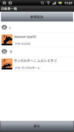 また、給油の記録の際に使用できるデータとして、所持している車と、よく行くガソリンスタンドを登録できるようになっています。また、車の登録の際に利用できるデータとして、車のメーカーを登録できるようになっています。