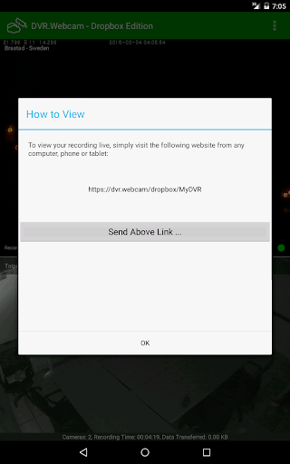 DVR.Webcam is a plug-and-play solution to personal surveillance for audio/video recording. It is a cloud-based DVR (digital video recorder) app that uses Dropbox as its cloud storage. You install the app on a phone or tablet that serves as the DVR station. It will let you record and view your camera time-lapse recording remotely.