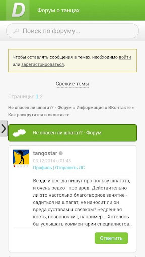 Удобное приложение для просмотра форума о танцах - dancee.biz