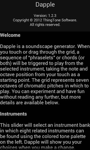 Your sounds will flow in stereo with headphones as you tilt the screen left and right. Dapple will quickly have you searching for even more indescribable sounds and musical patterns.