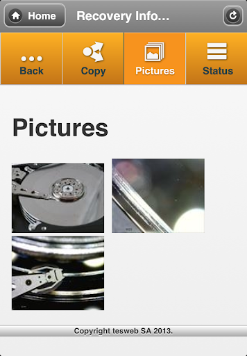 Follow the data recoveries of the Swiss society Tesweb SA. This app will allow you to view the full diagnostics, status, live byte to byte copies, pictures of your format, etc. and this for all the defective formats you gave to us.