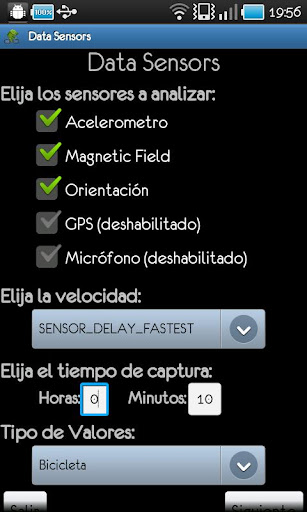 Once completed the capture time, the calculated features are stored in a file named DataSensors-DDMMYYYY-HHMMSS.arff on DataSensors folder, with the ability to send files to an email address.