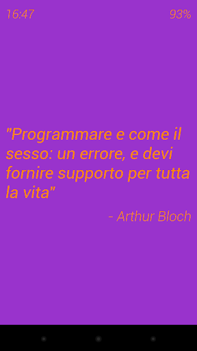 L'applicazione mostra frasi celebri come screen saver in italiano.