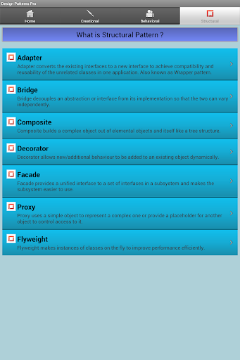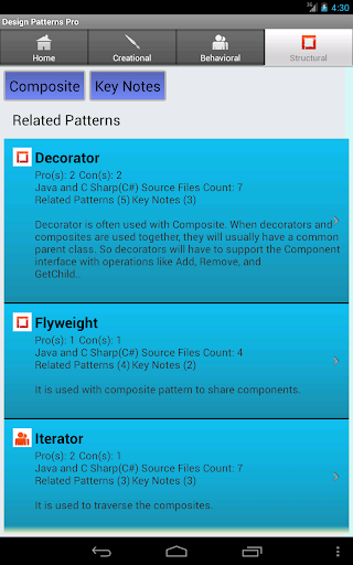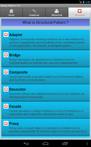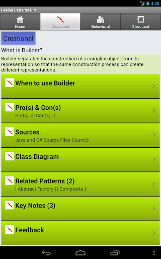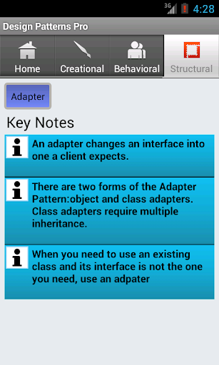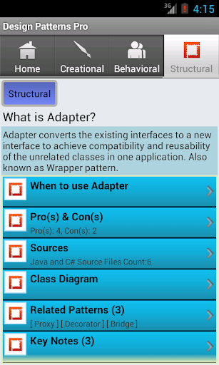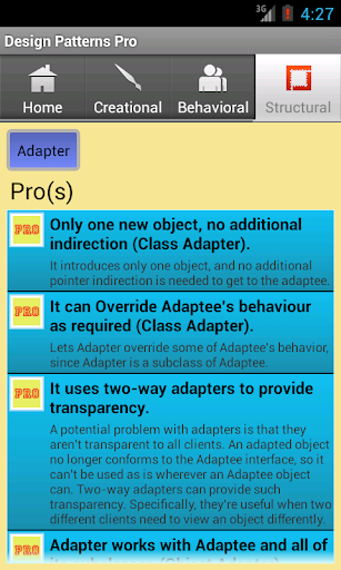 Best feature of this App is that you do not have to depend on INTERNET ACCESS to read about the Design patterns. This App works on all versions of the iphone. It is available of ipad.