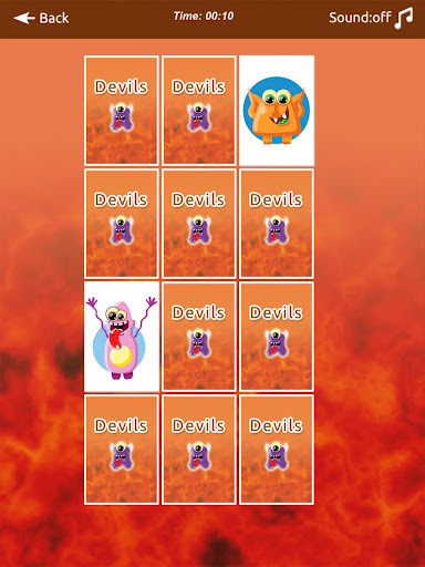 Flip the cards to see the picture and match pairs. There are three difficulty levels (easy, medium and hard).