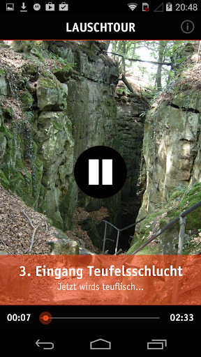 Als besondere Zugabe enthält die App die komplette Lauschtour rund um die Teufelsschlucht: Wandern Sie von Lauschpunkt zu Lauschpunkt und hören Sie spannende Infos zum Mythos Teufelsschlucht, eine Zeitreise durch die Erdgeschichte oder eine Mitmach-Tour durchs Landschaftsmuseum.