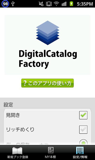 「DigitalCatalogFactory」は、企業様にてお持ちの紙資料を手軽に電子化し、Android OSのスマートフォン/タブレットから閲覧することが出来るアプリです。