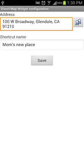 This widget looks just like a shortcut. When clicked, it opens the maps application with the an address you entered or pulled from your contacts.