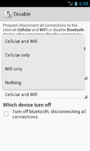 Program disconnect all connections to the internet Cellular and WiFi or disable Bluetooth device, after some time after the screen turns off, and immediately resumes connection or turns device after the screen is turned on program may remains inactive during charging