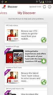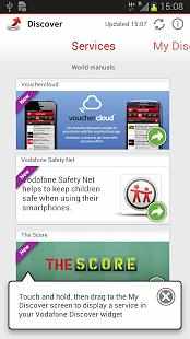 Vodafone Discover is a new application and widget designed to help you get the best out of being a Vodafone customer. It’s free to use and doesn’t take up any of your monthly data allowance. With Vodafone Discover you can:- Easily switch your phone to flight mode or turn your Bluetooth or Wi-Fi connection on or off- Discover other great services from Vodafone to make the most of your smartphone including security tools, cloud services and more.Important things to note:- The application will only work if you are a Vodafone customer - Enjoy the best Discover experience by installing the widget. Do this by long pressing on a free panel on your device home screen >select Add Widget and then choose ‘Vodafone Discover’- Vodafone Discover supports Android versions 2.1+- This application is not optimised for use on tablets.- Vodafone Discover is a hub for other services and applications. You may need to install additional applications to use Discover fully. Using these other services may incur data charges. Please see the terms and conditions of each service for details- Discover may link you to websites or videos. If you follow these links away from Discover your data tariff applies. - Content and applications within Vodafone Discover are subject to regional availability- We recommend you set the application to update automatically to make the most of the latest featuresIn order to protect your privacy and security some parts of the Vodafone Discover are disabled when your phone is connected to a Wi-Fi network. For the best Vodafone Discover experience we recommend you use your mobile network.