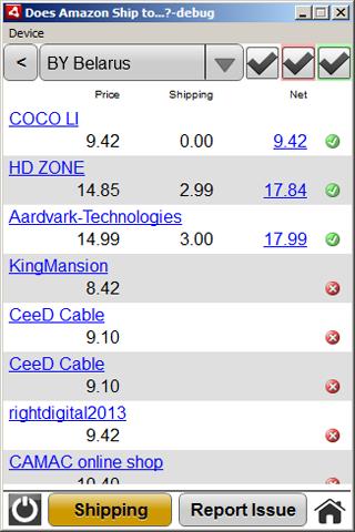 Application to check if Amazon.com, Amazon.co.uk, Amazon.fr, Amazon.de items could be shipped to your country.