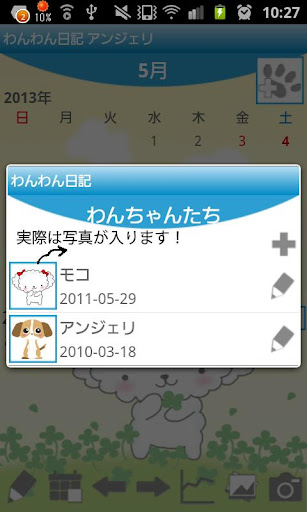 when you go back to the calendar after saving the dog list, you see the dog's photo on the right-top of the calendar. Tap the photo to move to "Dog List" window to reselect the dog.