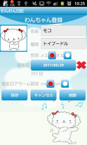 Daily and repeated plans for your dog can be saved with Dog Diary! You can set the alarm for important events as well!
