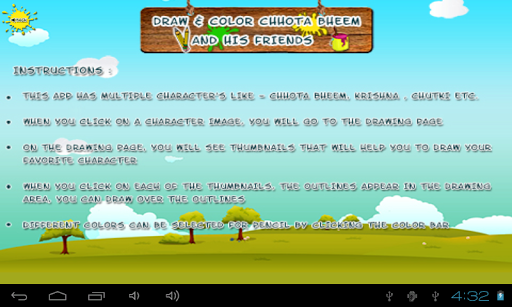 This App teaches Kids on how to draw their favorite Chhota Bheem character and color the same.