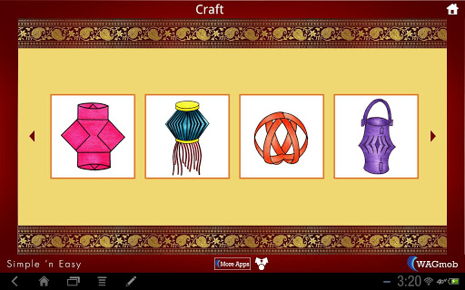 Craft section includes easy steps to make lantern and Rangoli stencils.