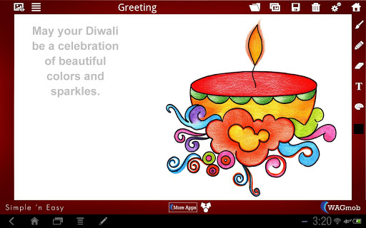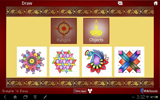Draw Diwali brings joy of light and colors to our tablets. This app enables you to 1) Draw colorful Rangolis and post them on facebook, 2) Learn how to make colorful lanterns and stencils, and 3) send joyful greetings.