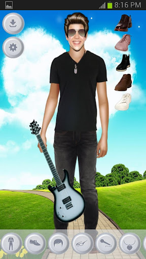 ==> Select the option related to caps, tops, bottoms, backgrounds, shoes etc, for making perfact for austin mahone suitable body when he looking handsome.