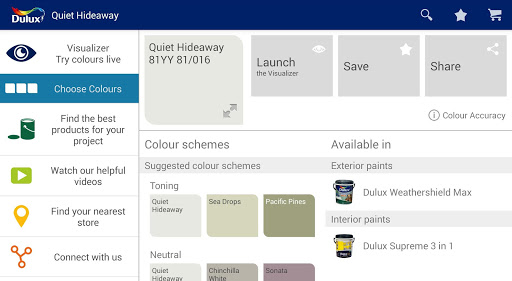 - Apply realistic Dulux paint colours to your walls with just a tap